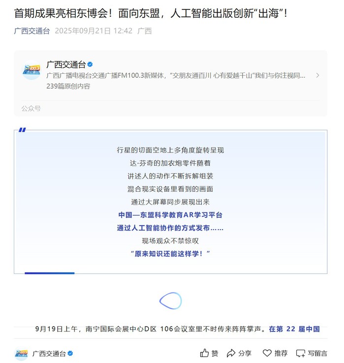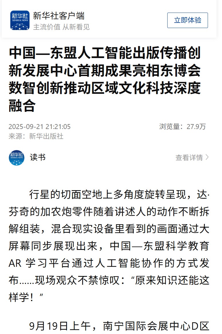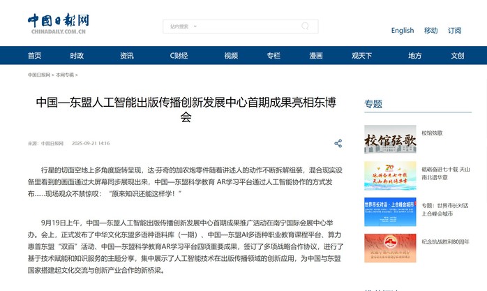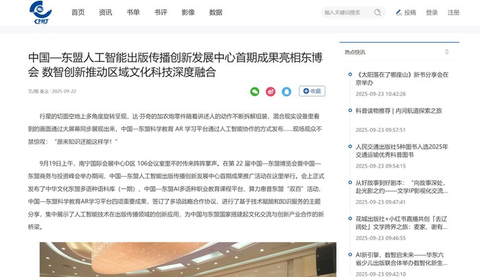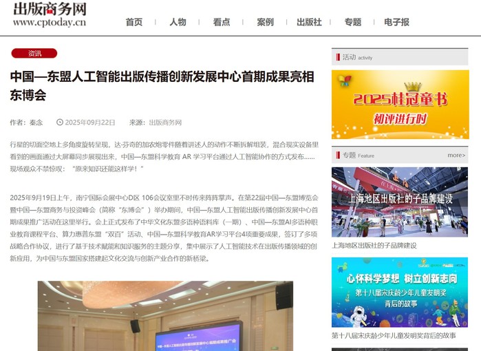 中国—东盟人工智能出版传播创新发展中心首期成果亮相东博会数智创新推动区域文化科技深度融合