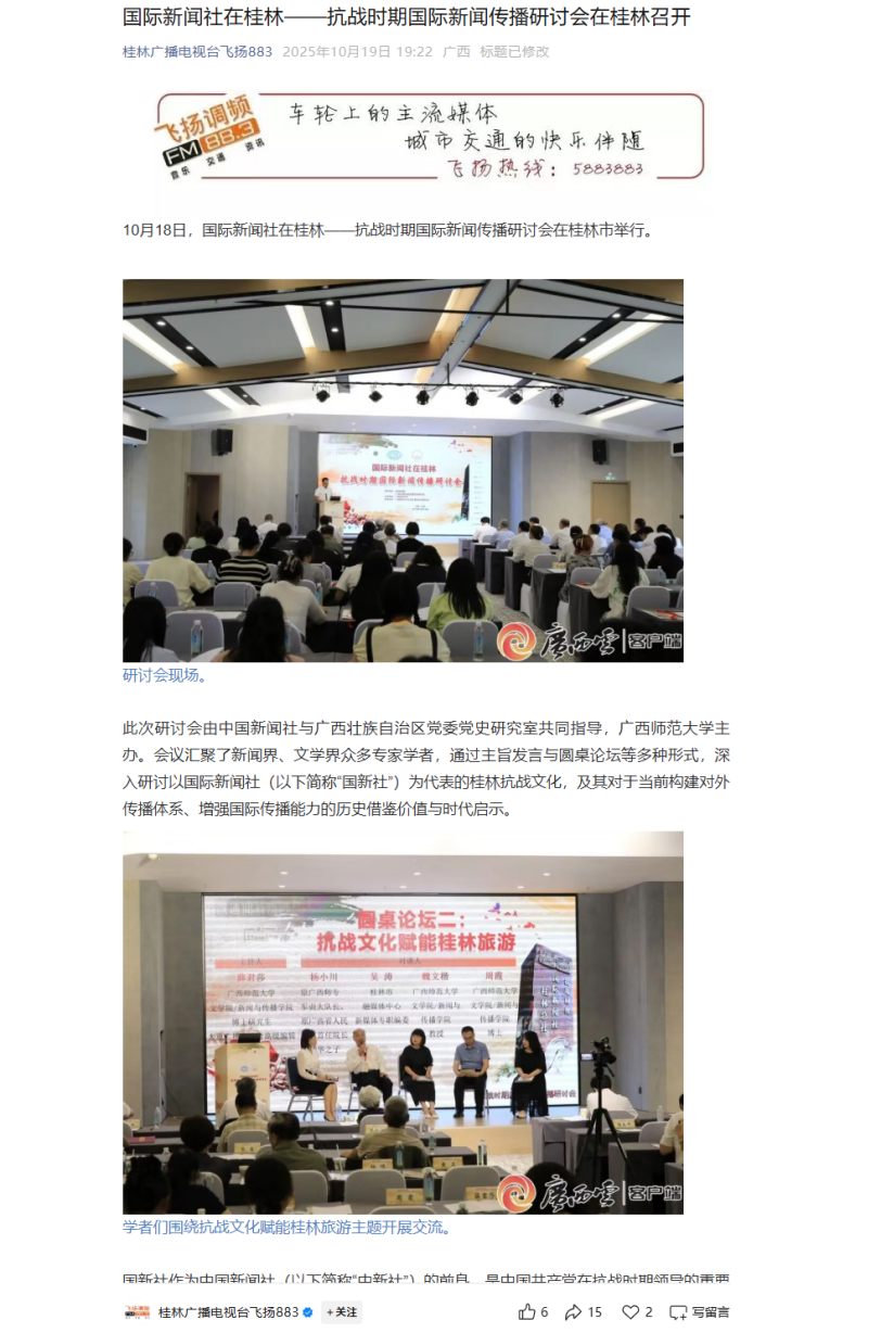 国际新闻社在桂林——抗战时期国际新闻传播研讨会在广西召开