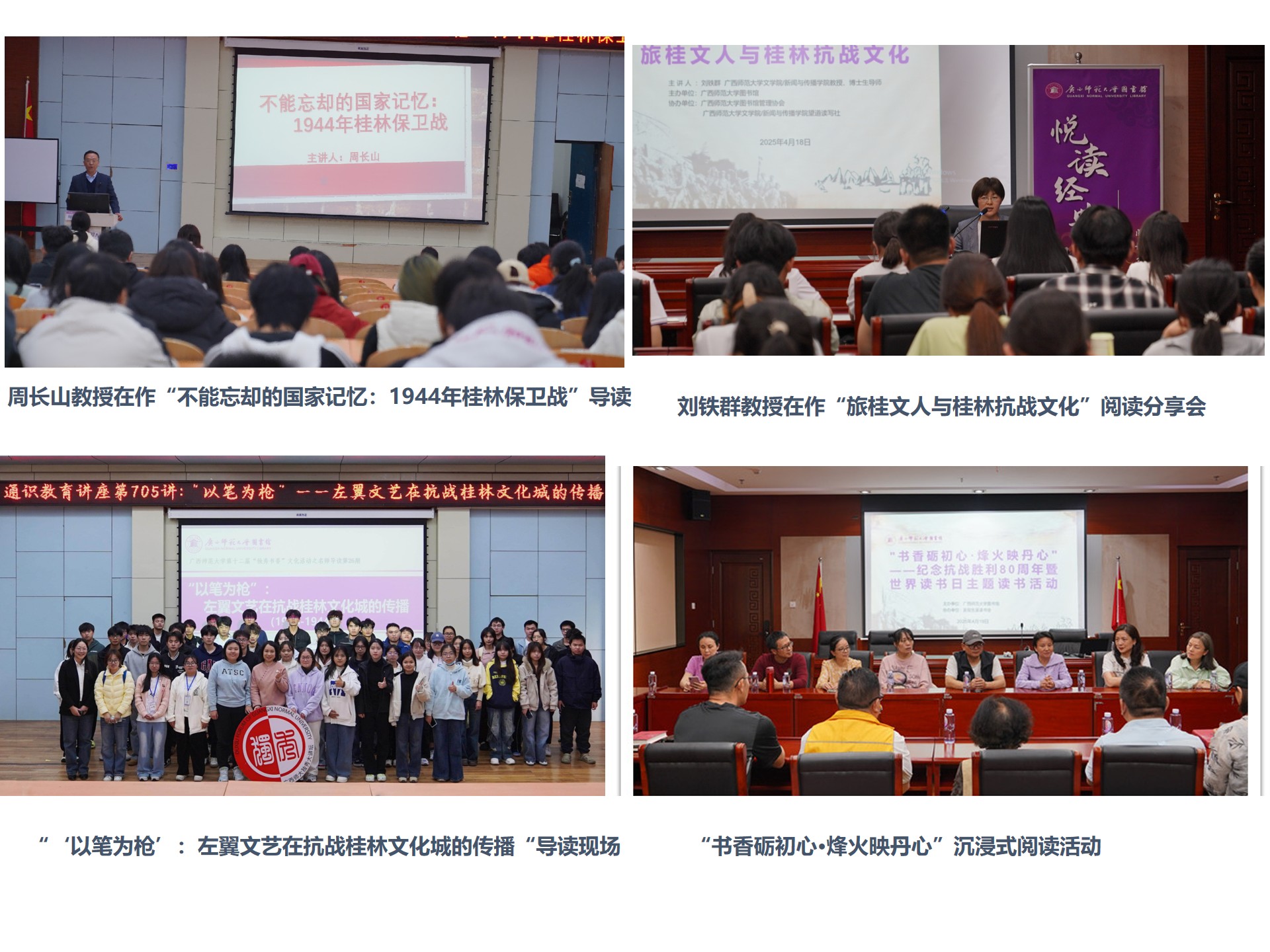 今年以来,广西师范大学图书馆紧扣立德树人根本任务,以“独秀书香”文化品牌为载体,创新打造“点线面”红色育人矩阵,策划开展了一系列形式新颖、内涵深刻的抗战主题文化活动。通过文献活化、技术赋能与体验融合,成功将红色基因植入校园文化血脉,引导师生在沉浸式学习中铭记历史,在深度阅读中砥砺奋进。