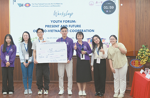 活动以“红色传承、合作探讨、文化互鉴”为核心脉络,构建起全方位、深层次的交流体系。在“红色足迹”研学之旅中,两国青年走进统一宫与战争遗迹博物馆。广西师范大学学生蔡开彬现场开展“望道微课”海外首讲,回溯中越两党两国在革命历程中的互助情谊,让红色基因在青年视角下焕发新活力。“‘同志加兄弟’的情谊是扎根历史的深厚情谊。”广西师范大学学生笪鑫悦的感慨道出了青年心声。越南学生方远婷表示将以新方式传承共同的红色记忆。