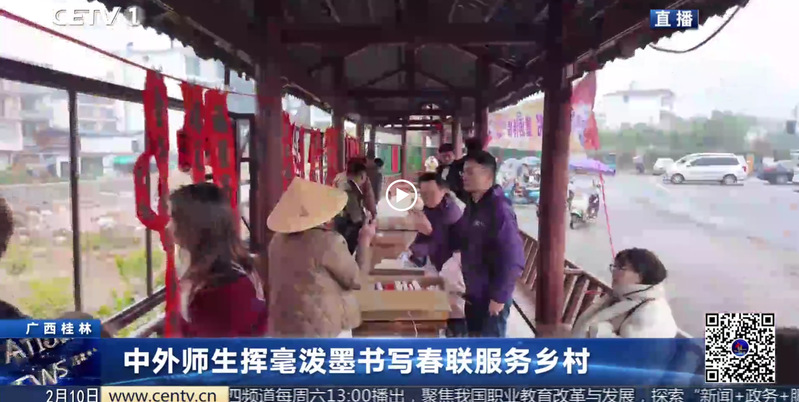 【中国教育电视台】关注报道我校留学生走进阳朔鸡窝渡村 开展乡村语言文化服务活动 发表于 2026-02-12 近日,【中国教育电视台】关注报道了广西师范大学国家语言文字推广基地组织中外师生走进桂林阳朔县鸡窝渡村,开展乡村语言文化服务活动,让留学生在浓浓年味中沉浸式体验中国年。遇龙河畔暖意融融,书法小课堂同步开讲。志愿者手把手指导当地儿童执笔运笔,解析汉字结构之美。来自俄罗斯、泰国、越南等国的留学生与鸡窝渡村的孩子们一同诵读诗篇、书写“福”字,在墨香中感受传统文化魅力。此次活动以书法为媒、以文化为桥,不仅为乡村送去了新春祝福,也搭建起中外人文交流的温馨平台。 现将报道转载分享。 报道链接:https://m.cetv.cn/p/579762.html#10006-weixin-1-52626-6b3bffd01fdde4900130bc5a2751b6d1?v=1770724205923?v=1770795133304?v=1770799906288?v=1770804977017