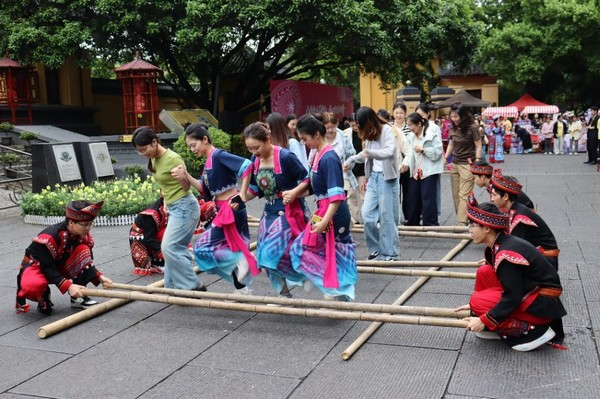 中外师生与市民游客共跳竹竿舞(供图:广西师范大学)